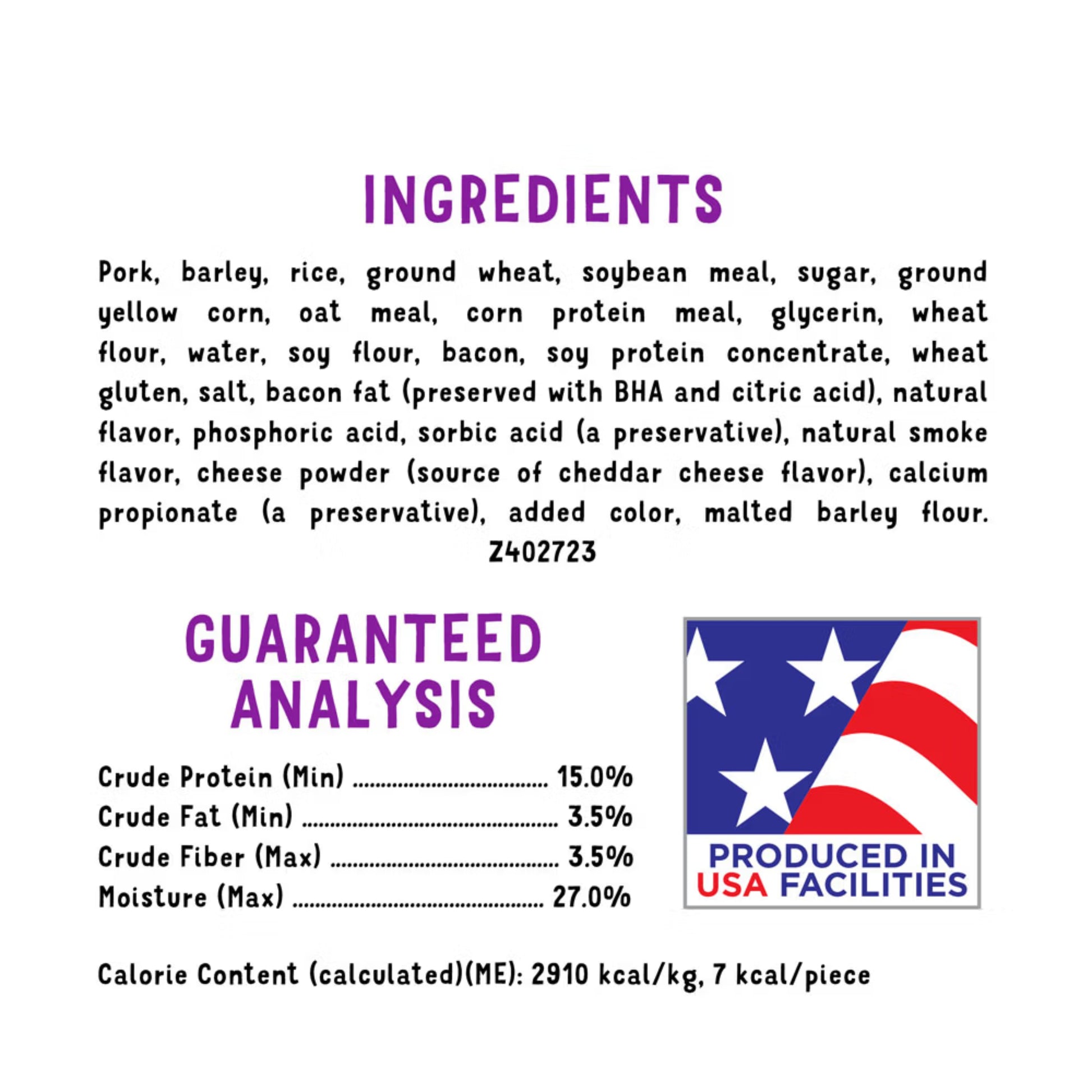 Sometimes you just need a LITTLE Beggin’ – so here’s big bacon and cheese flavor in a smaller-sized treat! These mouthwatering dog treats are made with real meat as the #1 ingredient. They look, smell and taste like bacon straight from the skillet – maybe because they’re MADE with real bacon.