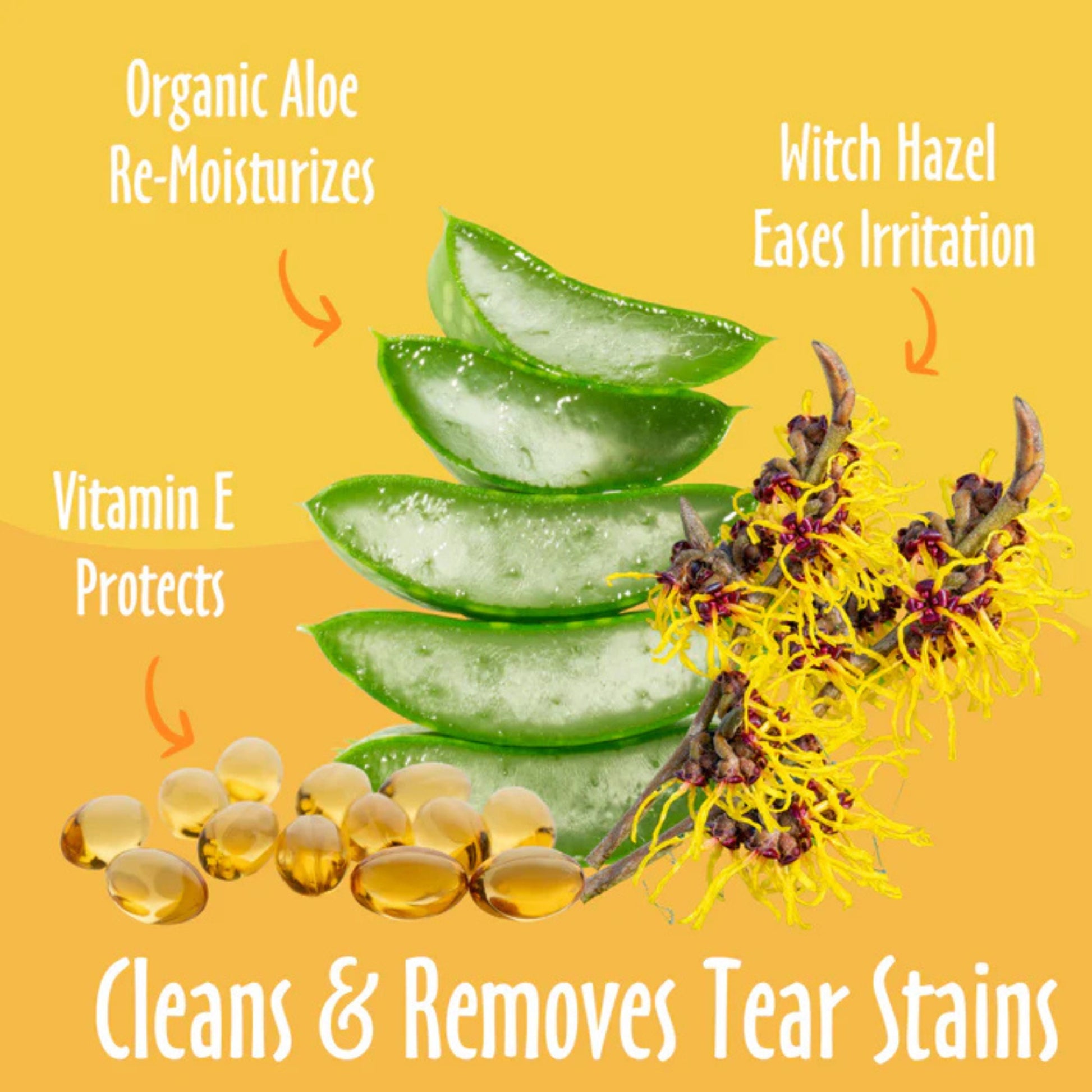 Eye Wipes are a fast, convenient way to keep the area around your pet's eyes clean and free of tear stains, dirt, secretions and other discharge. These plant-based eye wipes are hypoallergenic, fragrance free, and alcohol free. Safe for all animals over 6 weeks old.