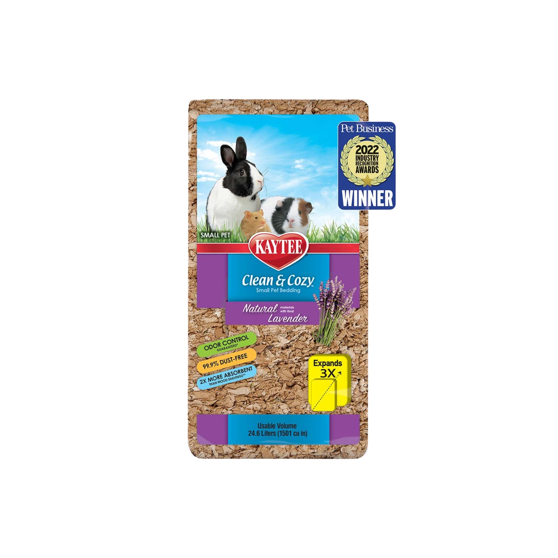 Kaytee Clean & Cozy Natural with Lavender small pet paper bedding gives you a whole new standard in super-soft, absorbent bedding. It is made from natural materials and is naturally scented with real pieces of lavender! Clean & Cozy is soft and fluffy to encourage burrowing or nesting while absorbing two times more liquid than wood shavings, or 5 times its weight in liquid. Clean & Cozy's absorbency means less odor. That's why Clean & Cozy has an odor control guarantee or your money back. Plus Clean & Cozy is 99.9% dust free for a cleaner cage. Perfect for pet hamsters, mice, gerbils, rabbits, guinea pigs, chinchillas and ferrets. Kaytee understands that sharing your life with a pet is not only enjoyable but very enriching. Kaytee shows our love by ensuring we provide your pet with the best products for a long and healthy life. With over 150 years of experience, it's no wonder why Kaytee is at the heart of every healthy small pet care routine.