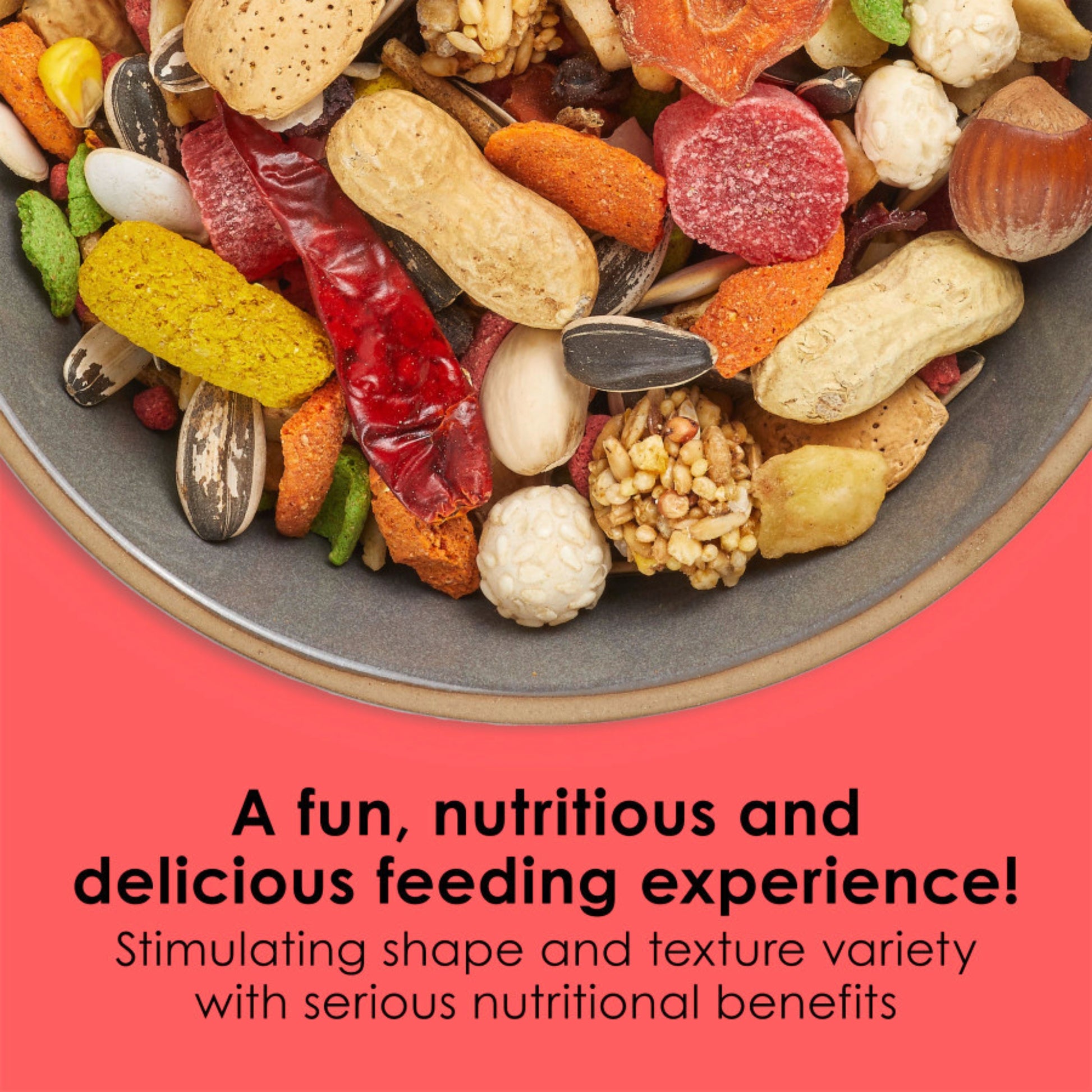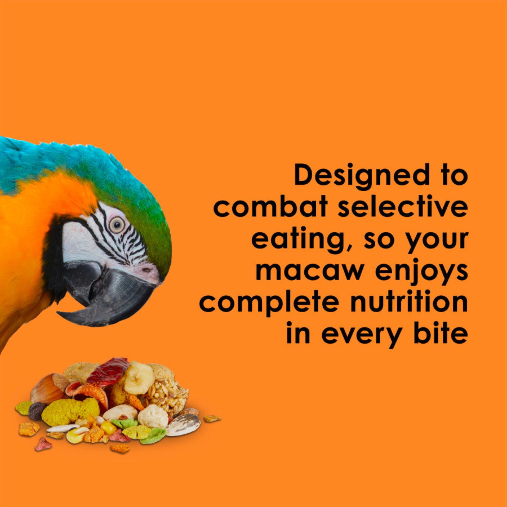 It’s a party at feeding time with Kaytee Fiesta! Kaytee Fiesta Macaw Food is a fun-filled, complete diet your animal will love, all while getting the nutrition they need to thrive. Filled with an exciting variety of ingredients, shapes and textures, this bird food blend engages your pet at feeding time and stimulates their natural foraging instincts to keep them from boredom. Kaytee Fiesta Macaw Food was formulated by a pet bird nutritionist so that your macaw is getting necessary nutrition in every bite. This is a nutritionally fortified gourmet diet made of a premium blend of fruits, vegetables, seeds and grains offering maximum variety and stimulation for your pet. While they’re loving their meal, you’ll love watching them work through the party of ingredients, shapes and surprises. This blend supports the digestive, brain, skin and feather health of your pet as part of promoting a healthy and happy bird. Sharing your life with a pet is more than just enjoyable, it’s enriching – and Kaytee believes feeding time can be the same. With over 150 years of nutritional experience, it’s no wonder why Kaytee is at the heart of every healthy feeding routine.