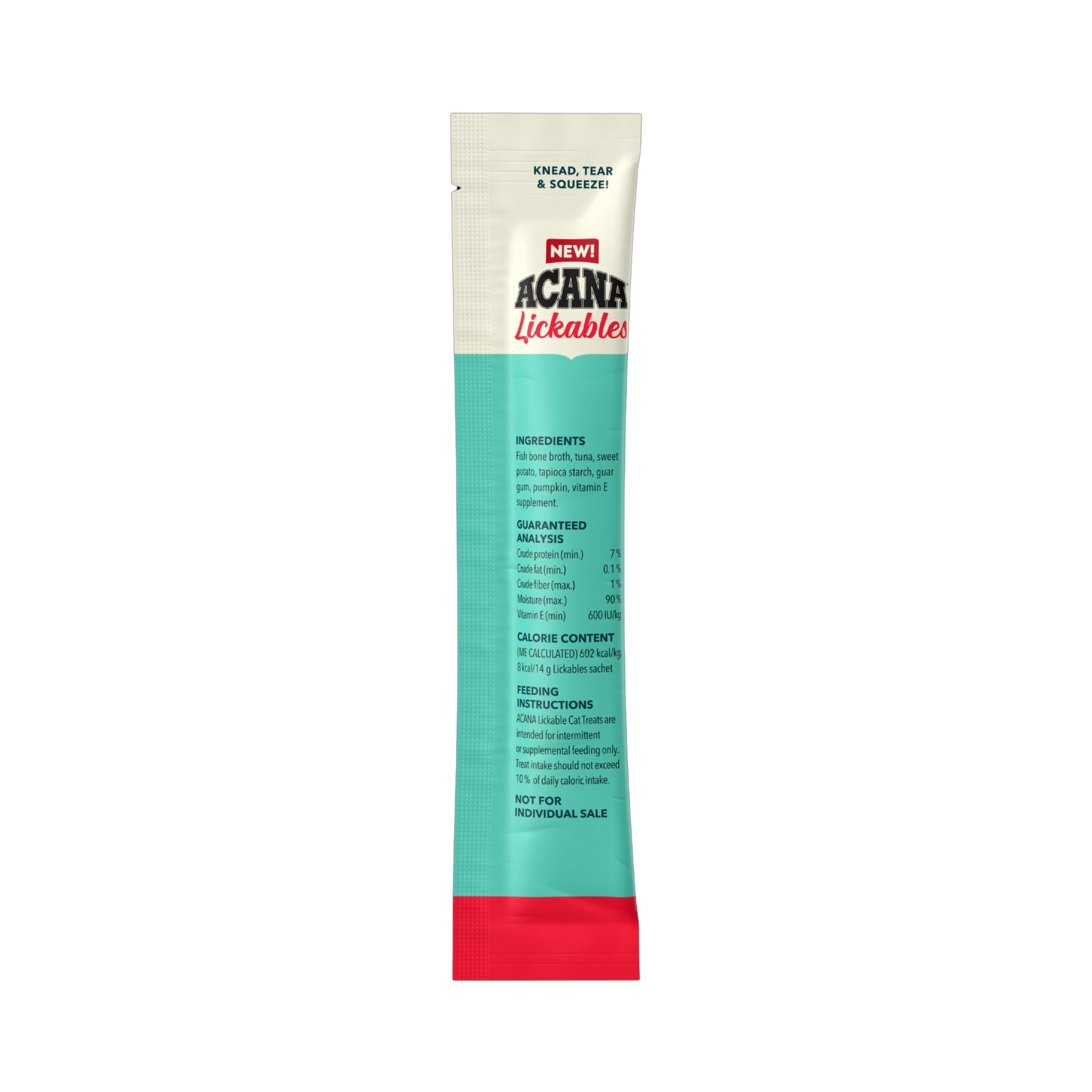 Share a special moment with your cat by treating them to delicious ACANA™ Lickables! Crafted with protein-rich animal ingredients and hydrating bone broth, Lickables treats will tempt your cat to come closer and purr with enjoyment as they bond with you and experience a burst of flavor. These treats are the perfect texture for hand feeding – simply knead, tear and squeeze the pouch to feed your cat a delicious purée, without any mess. Our Tuna Recipe also helps support immune health, giving your cat benefits in every pouch. Your cat will love this creamy, smooth purée, and you’ll love getting closer to your favorite furry friend!