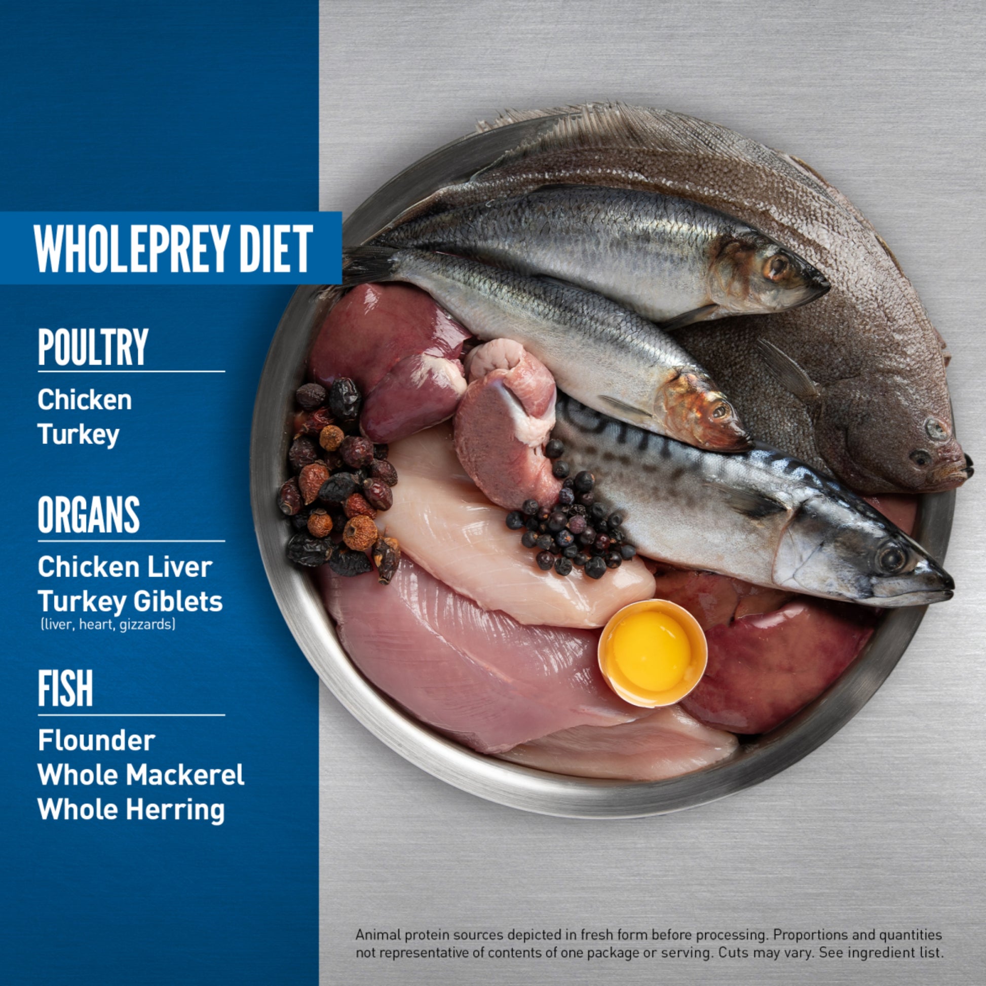 Our authentic WholePrey diet features the most succulent parts of the prey like poultry or fish, organs and bone to mimic what your dog's ancestors consumed in the wild.